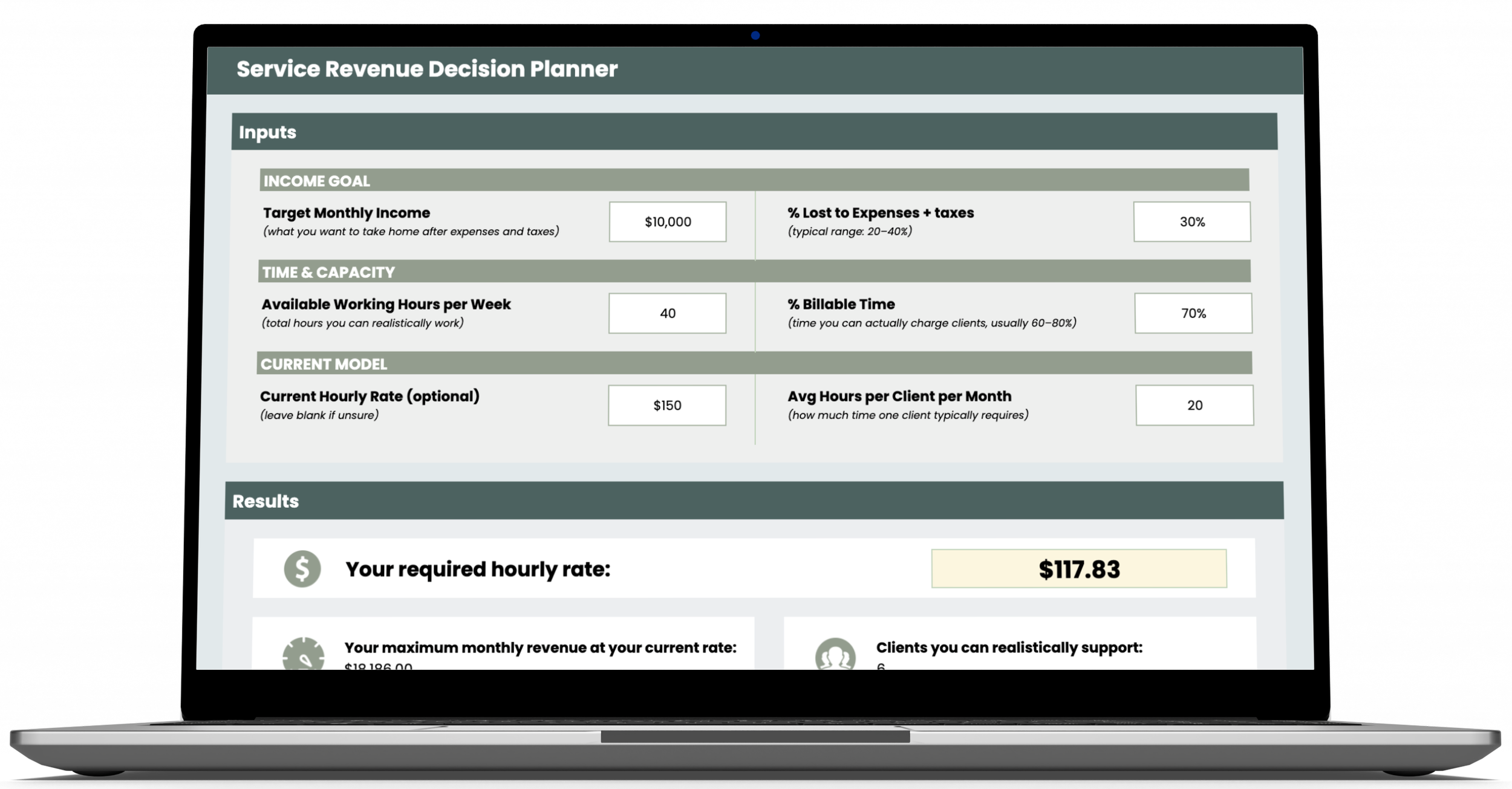 A practical pricing and capacity tool for freelancers who want to earn more without working more.